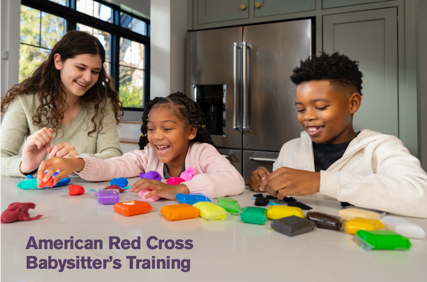 American Red Cross Babysitter Training- high standard training for youth ages 11-16 covering Performing basic childcare skills, Safety, Leadership, Decision Making, The Business of Babysitting, and First Aid-with video, discussions and class worksheets, hands on training in-class. 10 year American Red Cross Certification.
